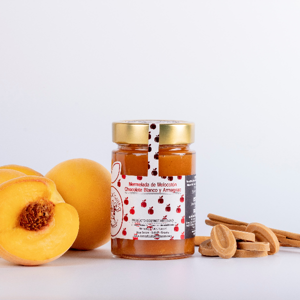 Mermelada de melocotón, chocolate blanco y Armagnac